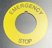 22mm Plastic E-Stop Legend Plate. Compatible with 800F and other 22mm operators.